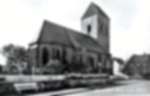 Das alte Bild zeigt die Nordost-Ansicht der St. Amandus-Kirche um 1955. Die alte Kirchhofsmauer und die alten mächtigen Linden mussten einer großzügig angelegten Freitreppe weichen. Bei Ausgrabungen in den Jahren 2001/02 fanden Archäologen heraus, dass an gleicher Stelle bisher viele alte Kirchen gestanden haben, deren Grundrisse bis hin zur ältesten, einem Pfostenbau, aus dem 13. Jahrhundert gehen.