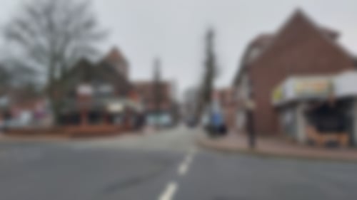 Wir sind hier auf der Großen Straße im Kreuzungsbereich Kolpingstraße (links) und Bokeler Straße (rechts).