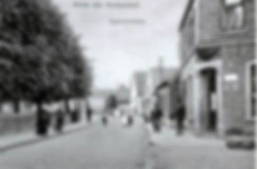 Auf der linken Seite sind die Bäume und die Einfriedungsmauer des Pastoratsgrundstücks zu erkennen. Auf dem ehemaligen Pfarrgrundstück wurde Anfang der 1970er Jahre die Einmündung der Kolpingstraße verschoben. Hinter der Standuhr auf der linken Seite wurde um 1977/78 der Neubau des Floristen Ribbing errichtet. Heute befindet sich dort ein Fahrradladen.