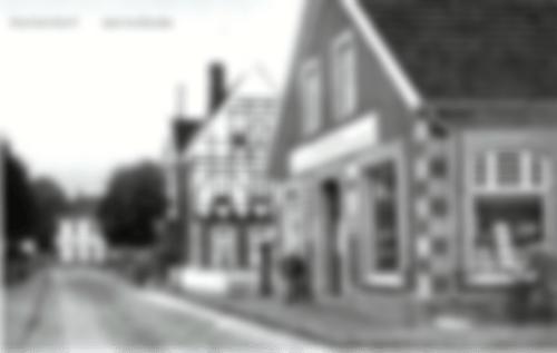 Wir sind hier auf der Großen Straße Richtung Innenstadt. Auf der rechten Seite ist die Einmündung der Schulstraße. In dem heute noch existierenden denkmalgeschützen Eckhaus befand sich die Buchdruckerei Watermann. Dahinter der frühere Gasthof Watermann. Das Fachwerk ist nicht tragend, sondern dient nur der Optik.